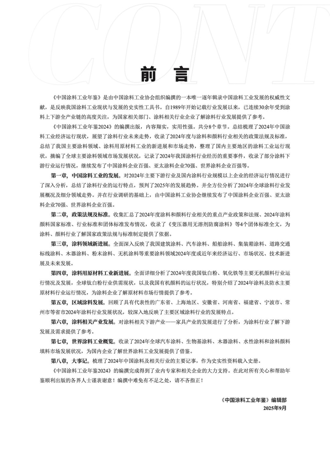 第八章,大事记。梳理了2024年中国涂料及相关行业的主要记事,作为史实性资料载入史册。