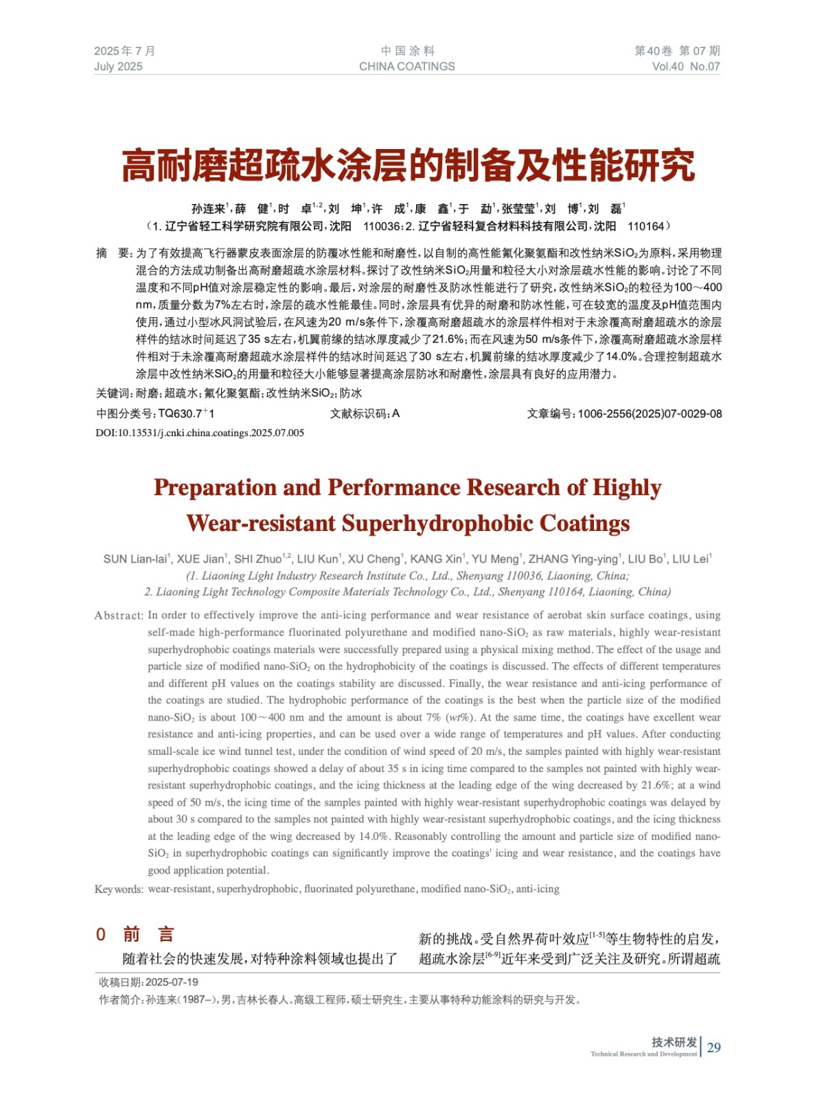 本文系作者@孙连来,薛 健,时 卓,刘 坤,许 成,康 鑫,于 勐,张莹莹,刘 博,刘 磊 授权中国涂料网发表,并经中国涂料网编辑,未经允许不得转载,如需转载请联系chinacoatingnet@vip.163.com