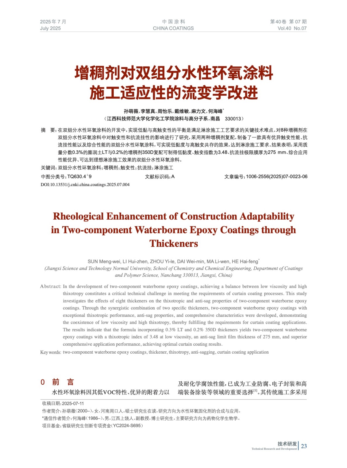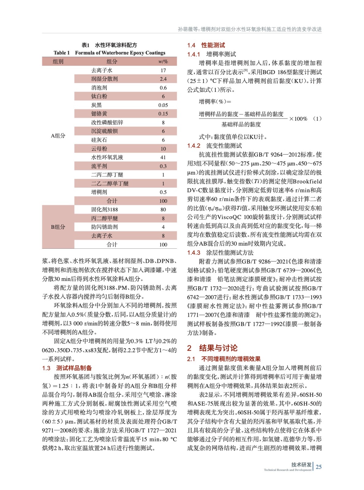 增稠剂对双组分水性环氧涂料施工适应性的流变学改进