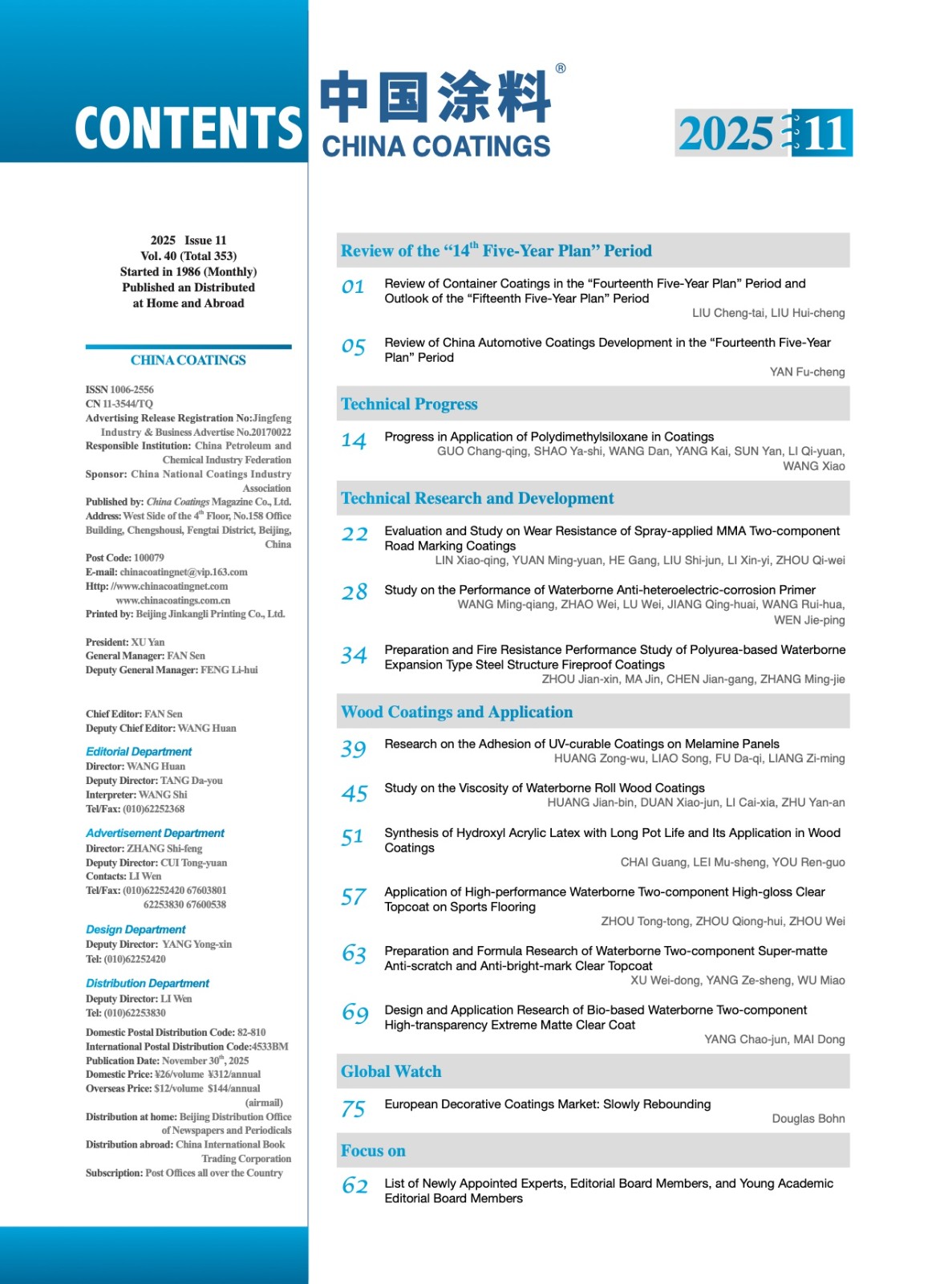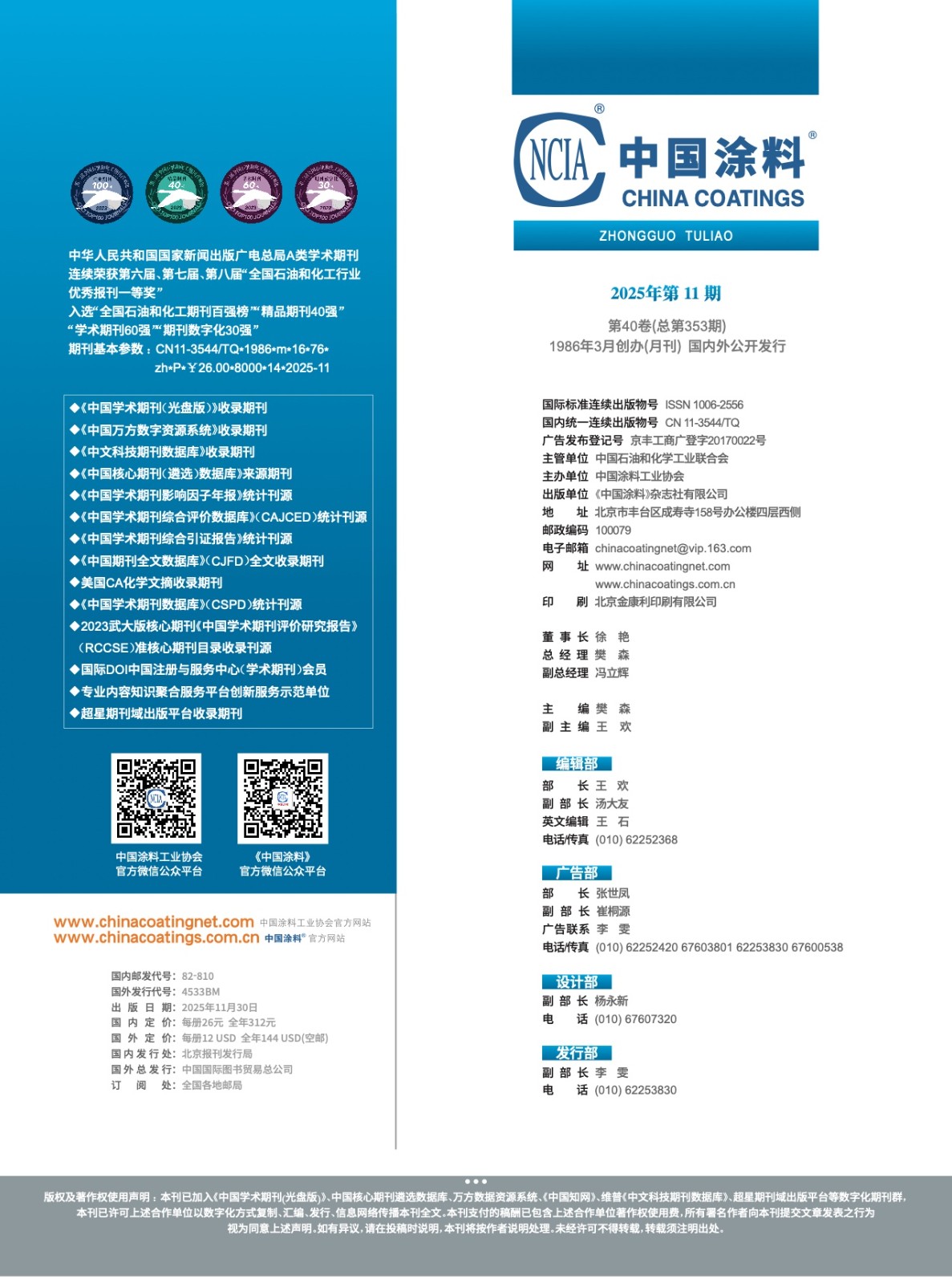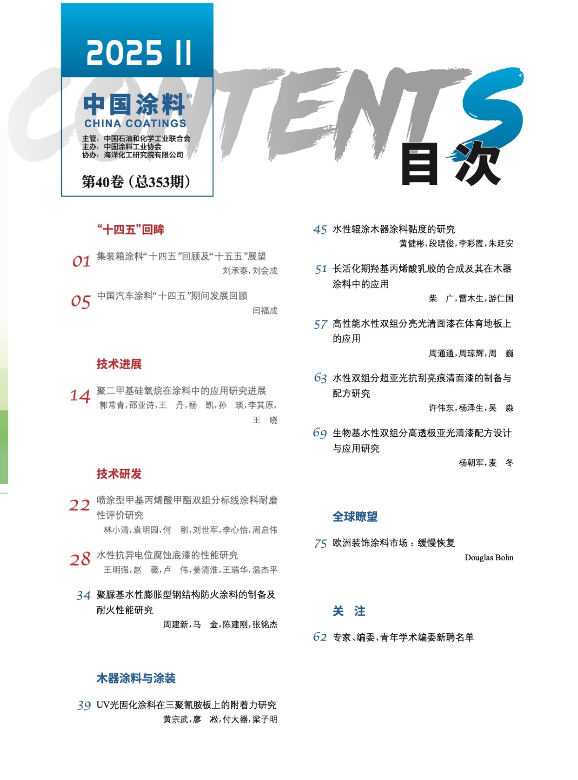 《中国涂料》2025年第11期版权及目录