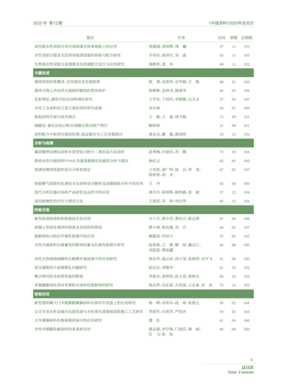 Ⅰ-Ⅵ 《中国涂料》2025年总目次