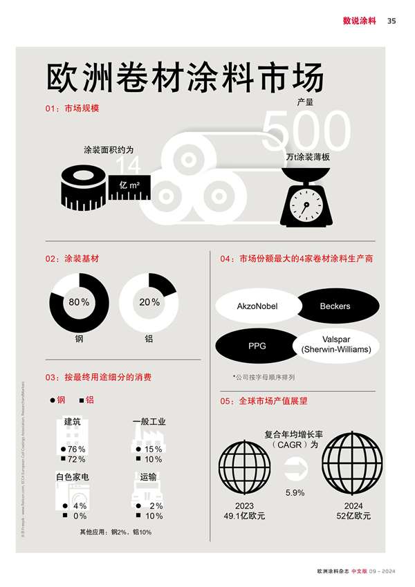 市场规模:涂装面积约为14亿m²,产量500万t涂装薄板。