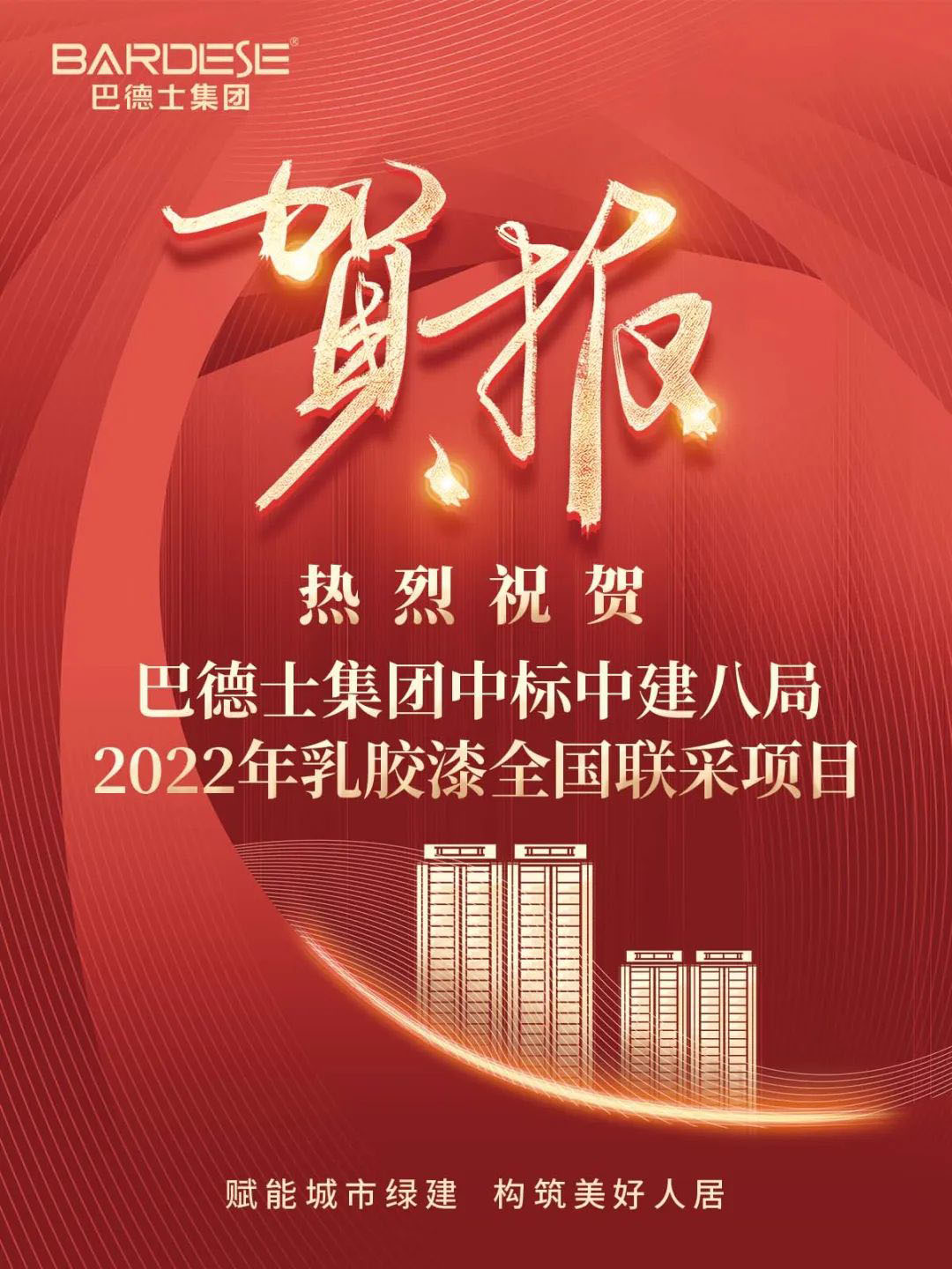 - 中标|巴德士成功中标2022年中建八局( 全国区域)乳胶漆联采项目