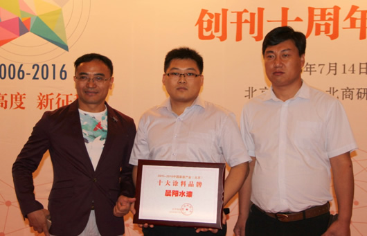- 十年家居《景气报告》晨阳水漆荣膺“十大涂料品牌”