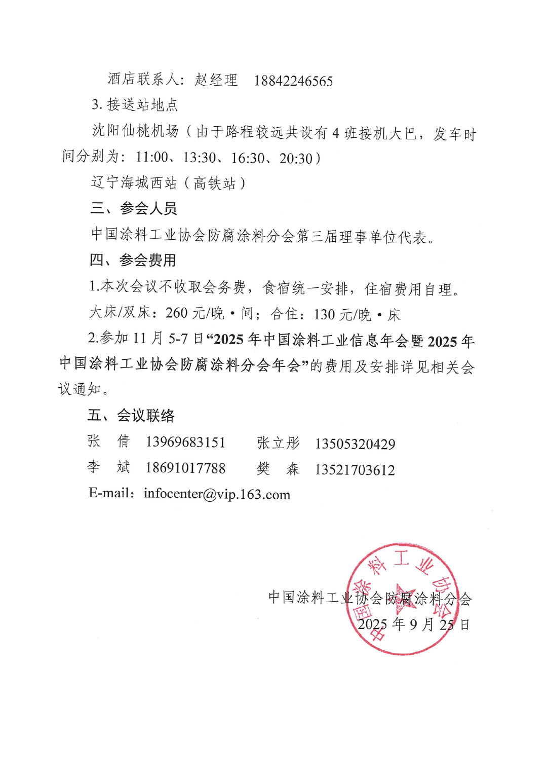2.参加11月5-7日“2025年中国涂料工业信息年会暨2025年中国涂料工业协会防腐涂料分会年会”的费用及安排详见相关会议通知。